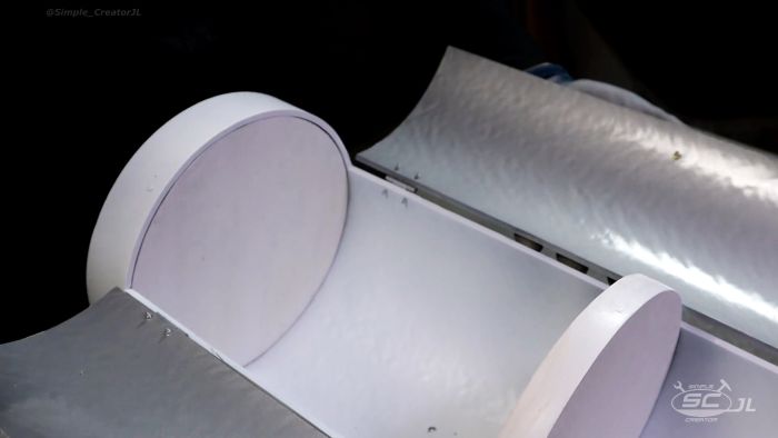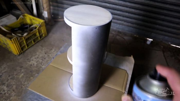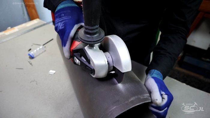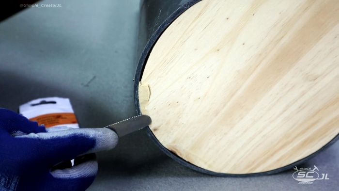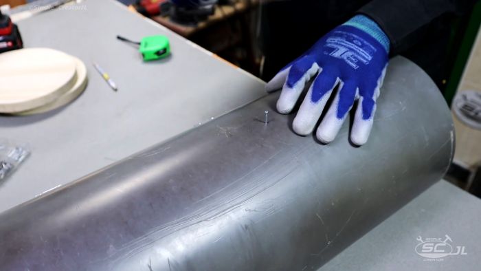 Точно также поступаем и с двумя оставшимся кругами, предварительно установив их по торцам трубы. Возможные зазоры между внутренней стенкой трубы и торцевыми кругами заполняем шпаклевкой.