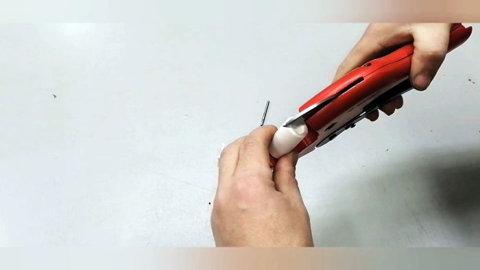 Берем трубу и при помощи специальных ножниц отрезаем кусок 3-4 см. Далее разрезаем его вдоль.