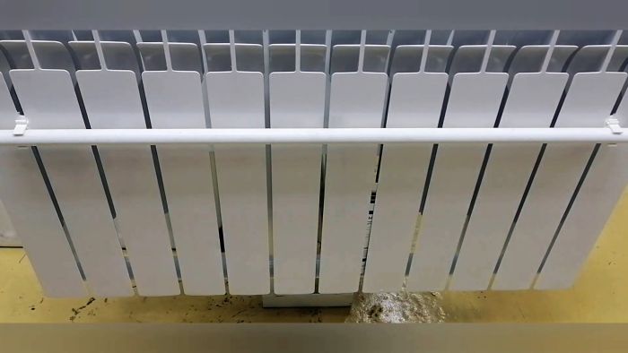 Такой же держатель установим и на другой стороне батареи. Далее установим трубу простым защелкиванием по обе стороны в клипсы.