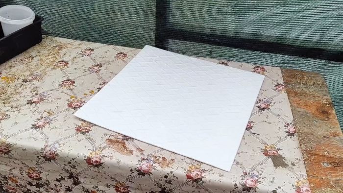 Для изготовления формы потребуется пенопластовая потолочная плитка 50х50 см с понравившимся вам узором.