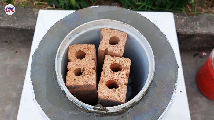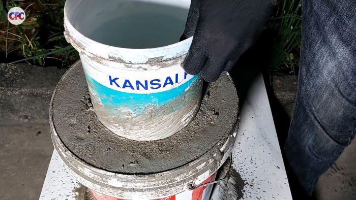 Когда бетон окончательно схватится, следует перевернуть печку и вылить на внешнее ведро кипяток.