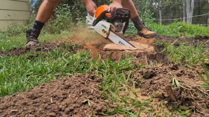 Первое, что надо сделать – это постараться отрезать надземную часть пня, как можно ниже к грунту. В идеале – на уровне с ним.