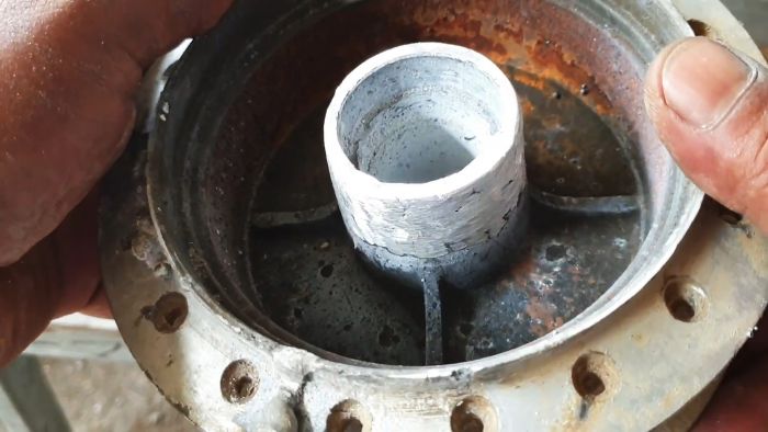 Алюминиевая деталь полностью восстановлена. Далее, конечно же, необходимо проточить посадочное место под подшипник на токарном станке.