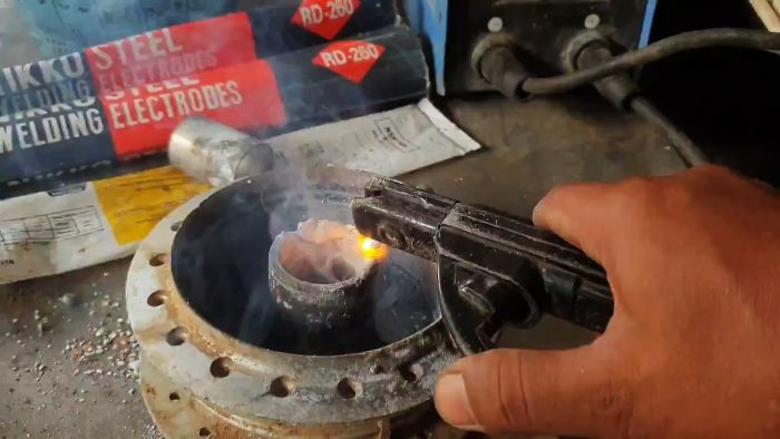 Процесс восстановления алюминиевой детали сваркой электродами по алюминию