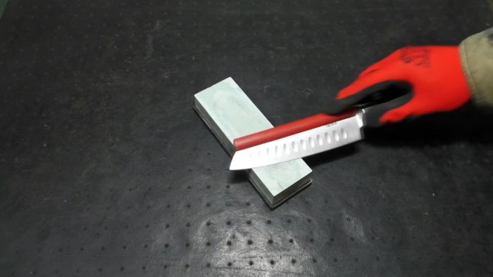 В идеале использовать точильные камни разной зернистости, постепенно понижая ее. Даже если у вас самый мелкий камень будет на 4000 GRIT, нож получится очень острым.