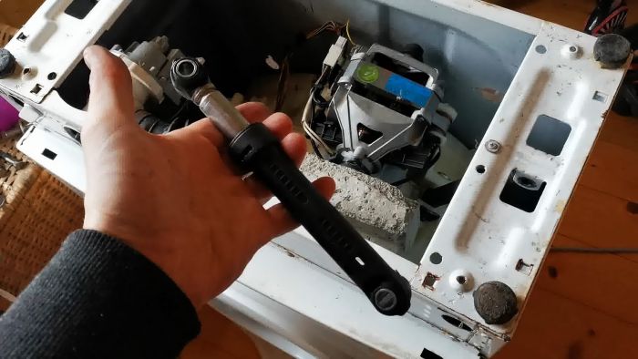 После этого амортизаторы должны сжиматься и растягиваться более плавно с меньшим усилием. Теперь если их поставить обратно в машинку, то скачков при отжиме уже не будет.