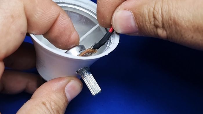 Устанавливаем переменный резистор в корпус, фиксируем гайкой.