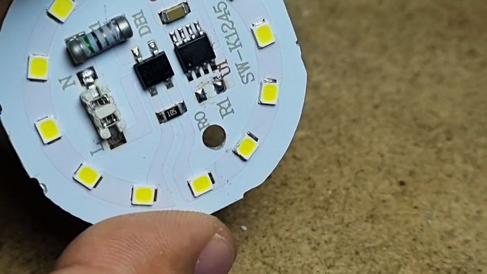 Отключаем плату от цоколя. Выпаиваем резистор номиналом 10 Ом.