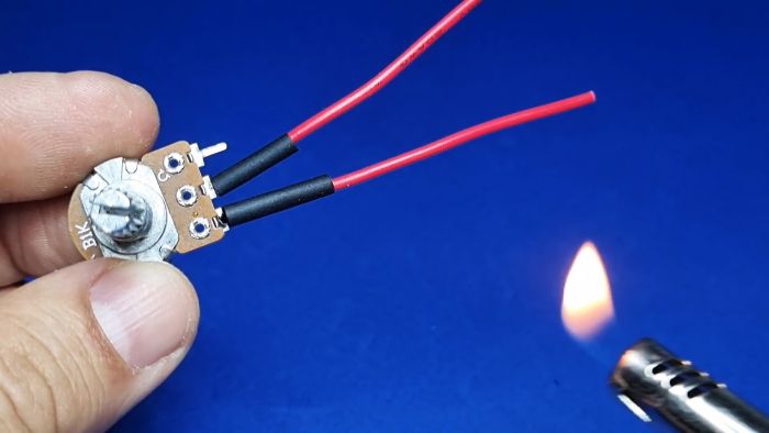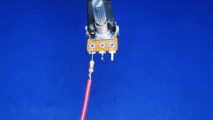 К переменному резистору припаиваем ограничительный резистор 8 Ом и провода.