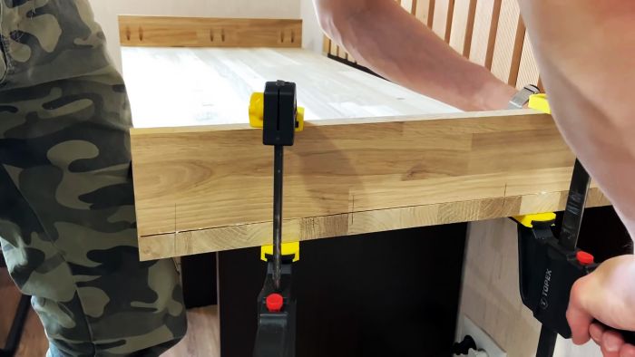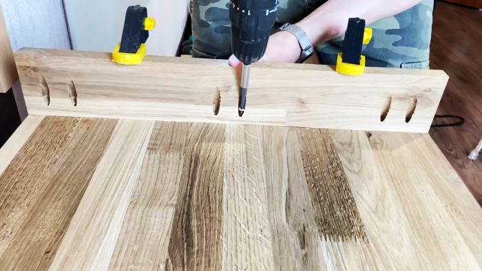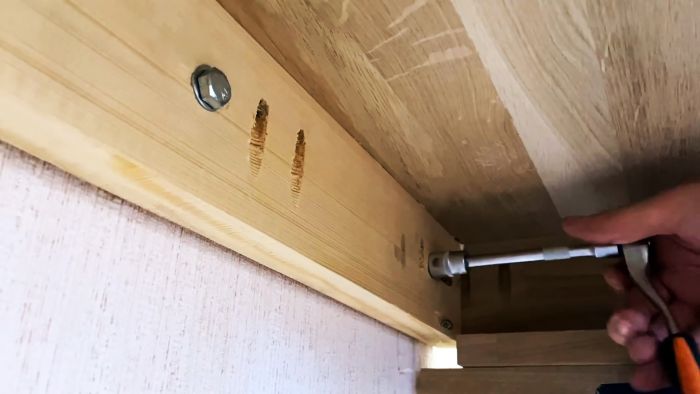 Они прикрепляются к столешнице на клей и косой шуруп.