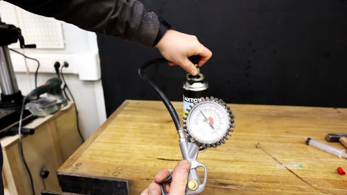 В баллоне с помощью насоса или компрессора нагнетается давление 4 атм.