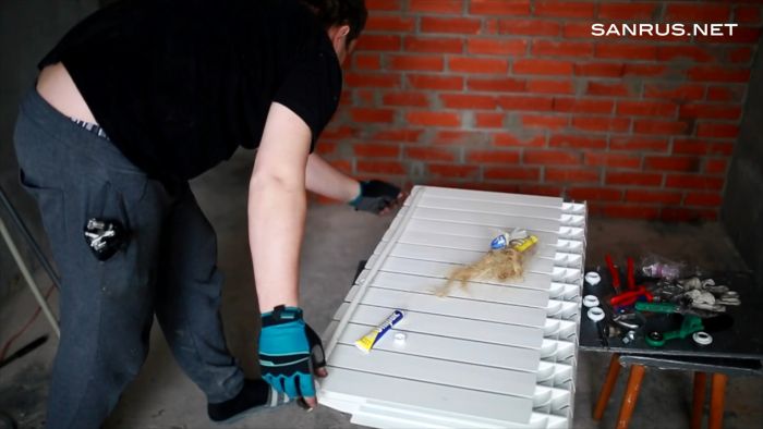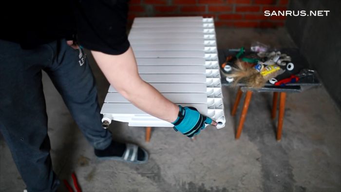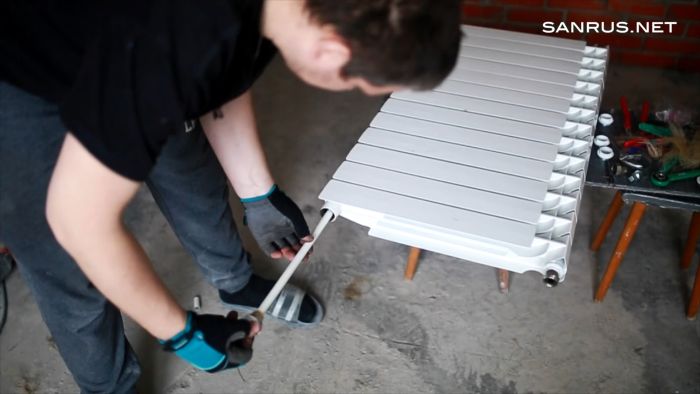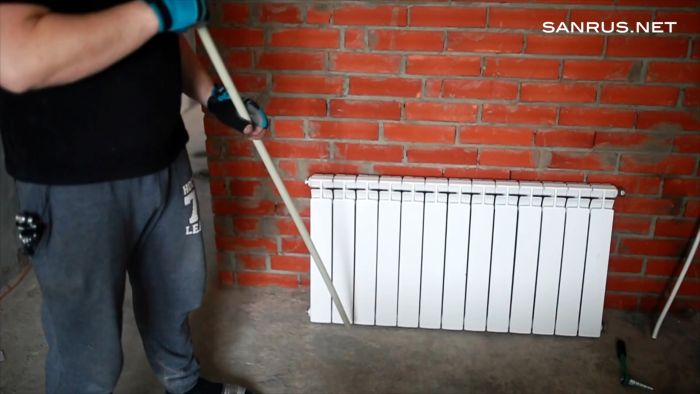 После этого необходимо приложить трубу к радиатору, и отметить место, где она доходит до последней секции, но еще не упирается в заглушку. После этого труба укорачивается.