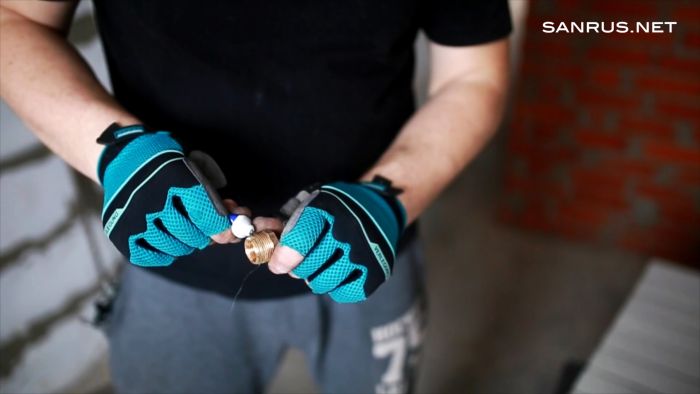 С другой же внутренней стороны заворачивается переходник на цангу 16 мм. Все это нужно уплотнить льном, или фумлентой.