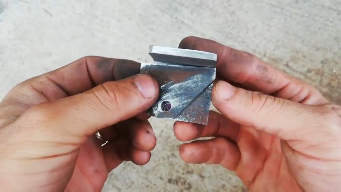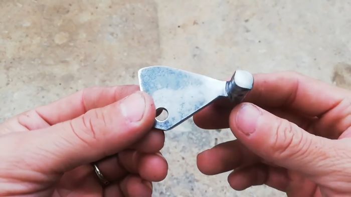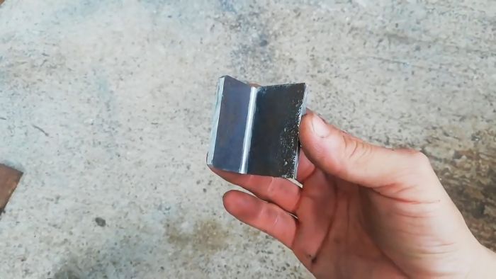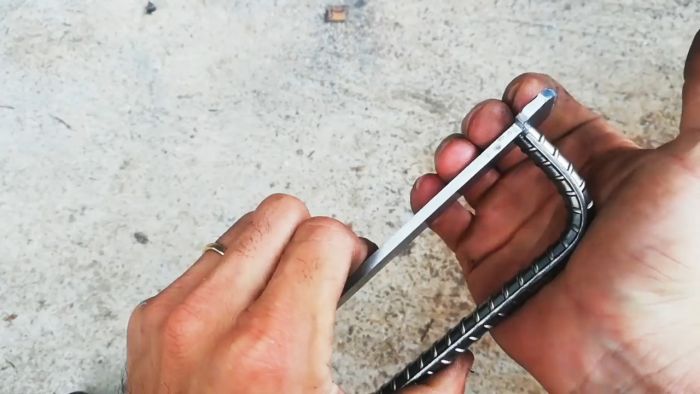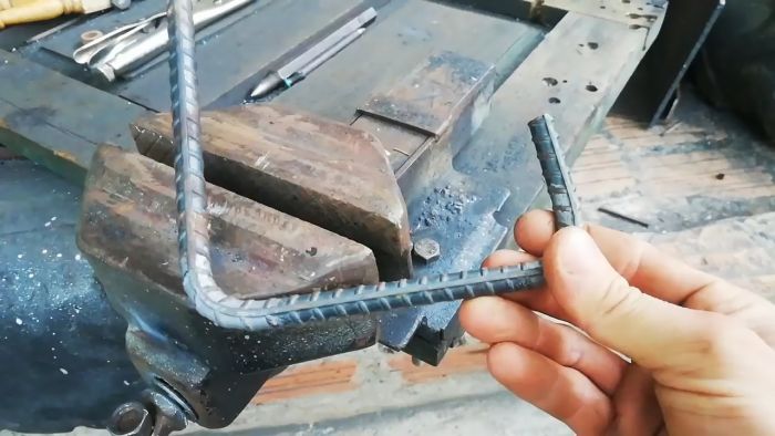 К самому заостренному углу треугольной детали привариваем поперек кусочек арматуры.