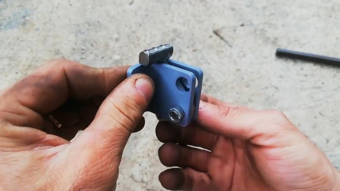 Деталь треугольной формы отверстием вниз укладываем на квадратную пластину и переносим центр отверстия на деталь снизу. На одном уровне с этой отметкой выполняем вторую. По первой отметке сверлим отверстие диаметром 0,6 см, по второй – 1 см.