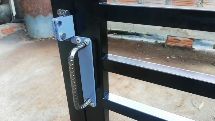 Вставляем ручку в отверстия пластины и завариваем с обратной стороны.