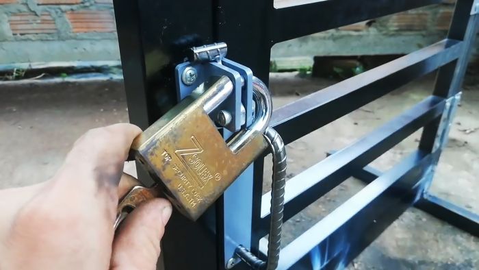 Если при закрытой защелке продеть через ее отверстия душку навесного замка и провернуть ключ, то дверь не откроется, пока не будет снят замок.