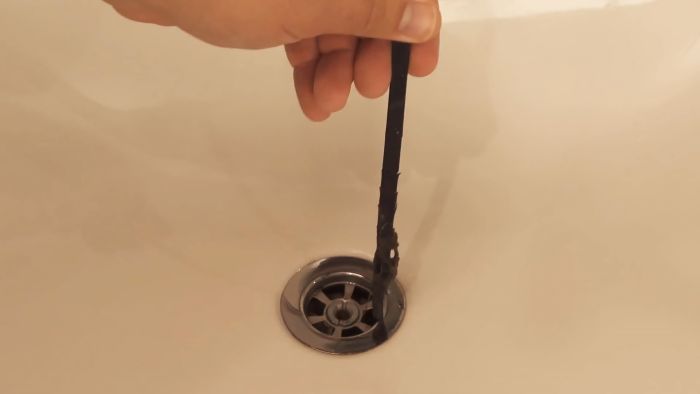 В итоге получается елочка с шипами. Берем этот инструмент, и вставляем в слив.