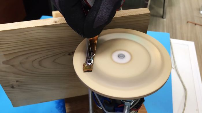 Затем из медной трубки выгибается кольцо. Края трубки заворачиваются в сторону. Диаметр кольца должен быть таким, чтобы при размещении над диском магниты оказывались строго под ним по всей окружности.