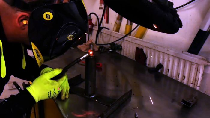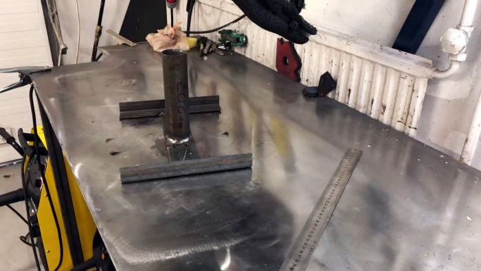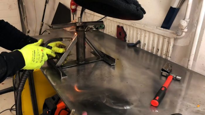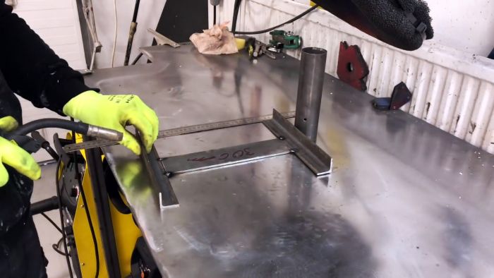 Прихватываем детали, проверяем геометрию и свариваем конструкцию.