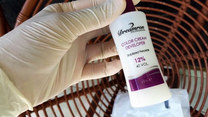 Для отбеливания необходимо нанести на пожелтевшую пластиковую поверхность крем-окислитель 12% для осветления волос.