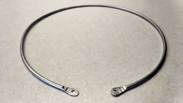 Проволоку (трубку) необходимо ровно обрезать в размер 600 мм. Затем согнуть в кольцо - вибратор. Далее расплющить концы и просверлить в них отверстия диаметром 3 мм.