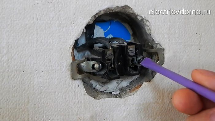 Убедившись в отсутствии тока в розетке, откручиваем распирающие лапки.