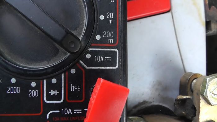 На самом приборе необходимо перевести положение переключения в режим замеры силы тока 10 А.