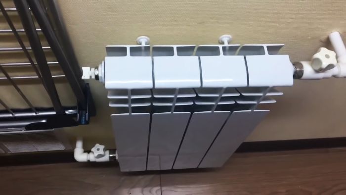 Отдача тепла производится при помощи биметаллических радиаторов, установленных по всей квартире.