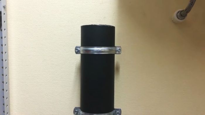 Крепим ТЭН вертикально в двух местах к кирпичной или бетонной стенке с помощью двух хомутов, одну половину которых закрепляем на стене, а другими с помощью болтов производим прочное и надежное стягивание.