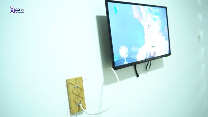 Включаем в гнездо телевизора. Антенну располагаем вертикально, можно повесить на стену.