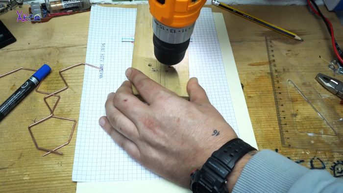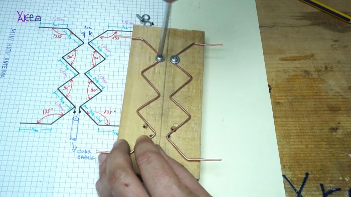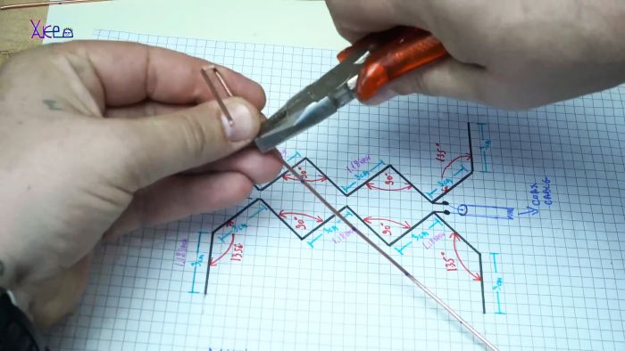 Нужно сделать два одинаковых плеча антенны. Для проверки точности прикладываем к чертежу.