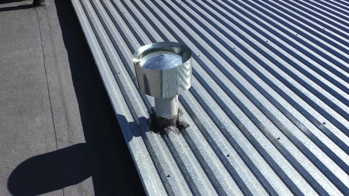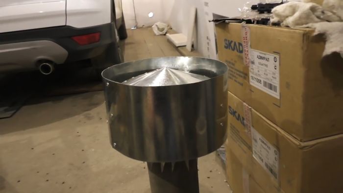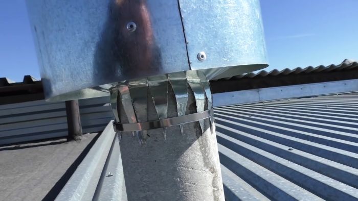 Сам дефлектор затягивается хомутом на вершине трубы вытяжной вентиляции.