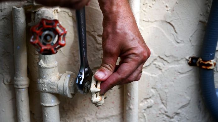 Способ 1. Гайка зажимается разводным ключом в направлении часовой стрелки. Но важно не перестараться с натяжкой, чтобы не сорвать резьбу, и не выломать кран.