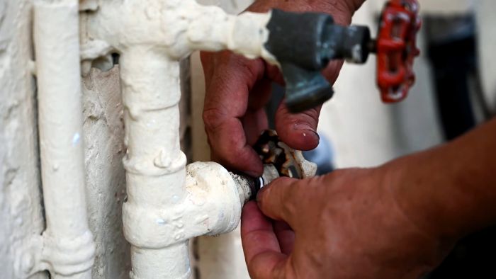 Часто проблема с течью вентильного крана решается поджатием гайки, удерживающей его шток. Это можно делать не перекрывая трубу, прямо под давлением.