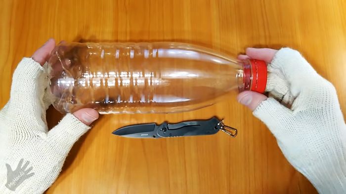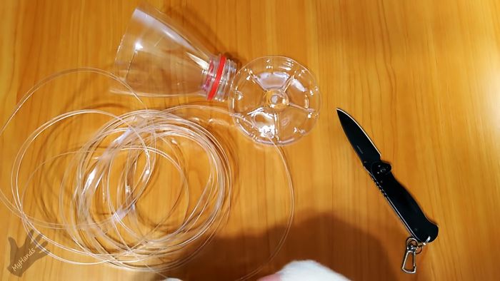 Многие делают специальные бутылкорезы, с помощью которых распускают ПЭТ бутылки на ленты. Последние потом используют в качестве веревки, для плетения шнуров и различных поделок. Такая лента прочная, и к тому же обладает термоусадочными качествами. Если она вам потребовалась, то нарезать ее можно с помощью ножа без сложного бутылкореза.