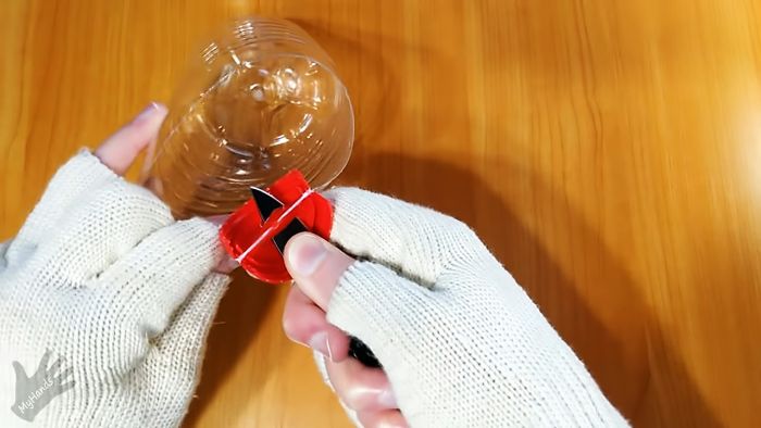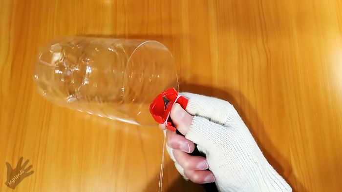 Процесс нарезки бутылки на ленты