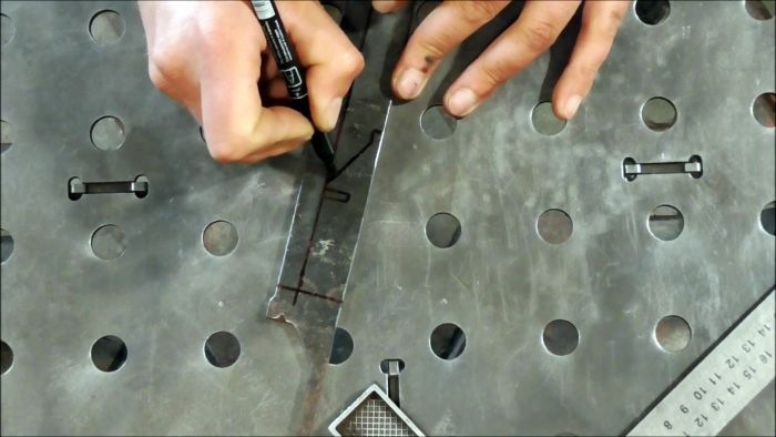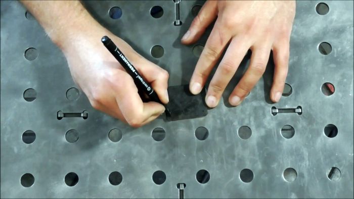 Инструменты: измерительно-разметочные принадлежности, болгарка, керн и молоток, сверлильный станок, метчик с ручным воротком, ручная отвертка.