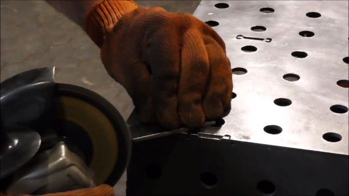 По выполненной разметке с помощью болгарки выполняем контур засова, удаляем заусенцы, острые кромки и скругляем углы.