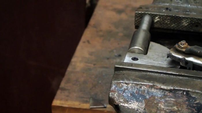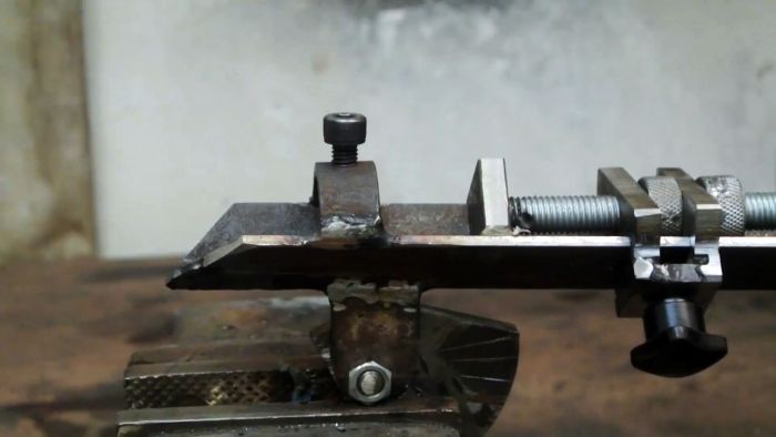 К концу шпильки поперечно привариваем квадрат из толстой полосы для скольжения по уголку при вращении шпильки.