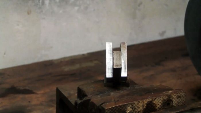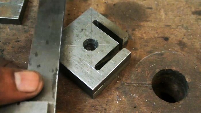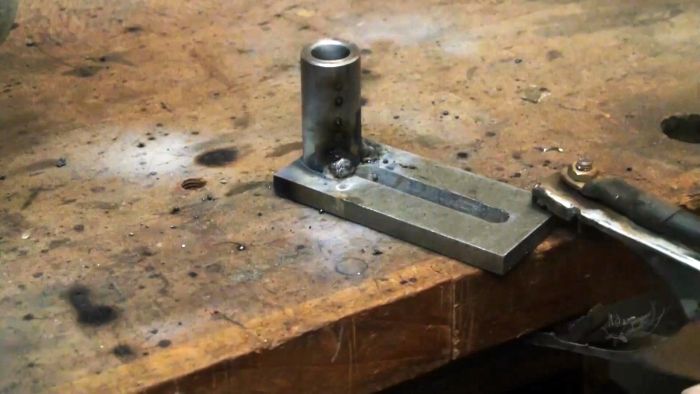 Ставим параллельно на квадратную пластину с резьбовым отверстием в центре две детали из квадрата вдоль противоположных сторон и привариваем.