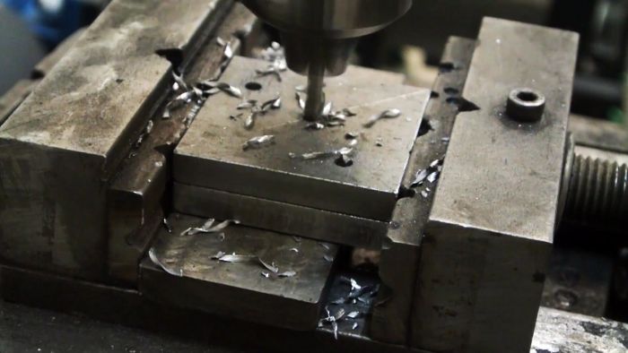 Склеиваем квадраты и по разметке сверлим три отверстия, причем отверстие в центре самое большое.