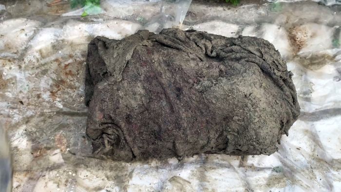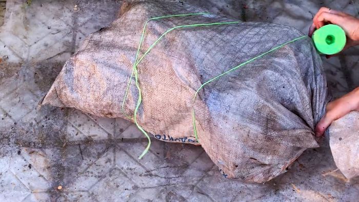 Затем необходимо замотать пакет с бутылками в это цементное одеяло. Остаток раствора выливается сверху.