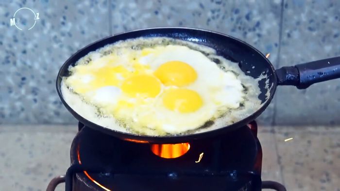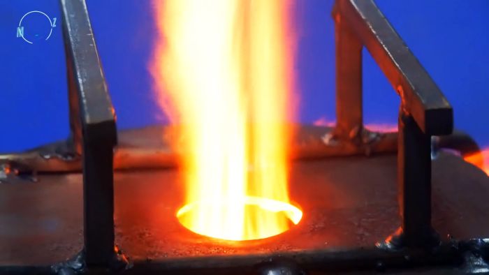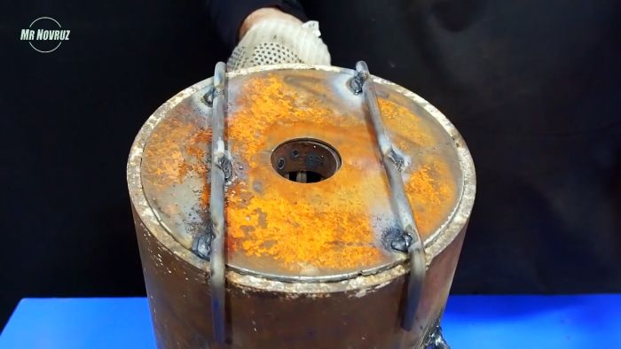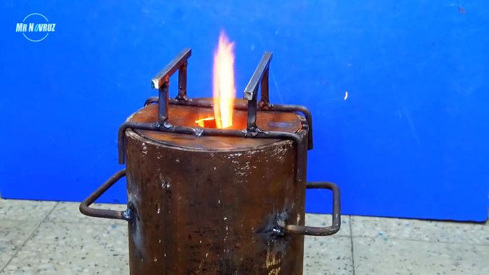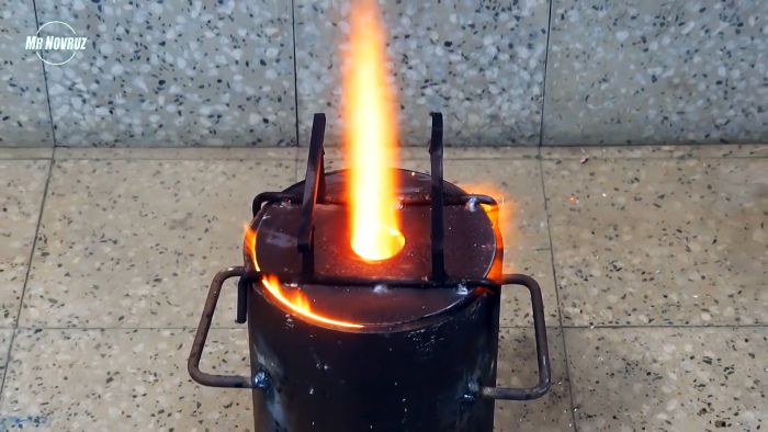 После того, как пламя разгорится, вентиль можно прикрыть, а сверху печь закрываем крышкой. Такой источник тепла служит не только для обогрева помещения, но и для приготовления разнообразной пищи.