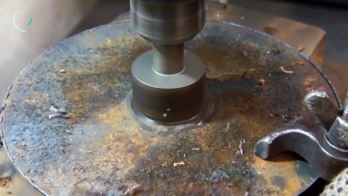 В центре крышки вертикальной трубы выполняем отверстие корончатым сверлом.