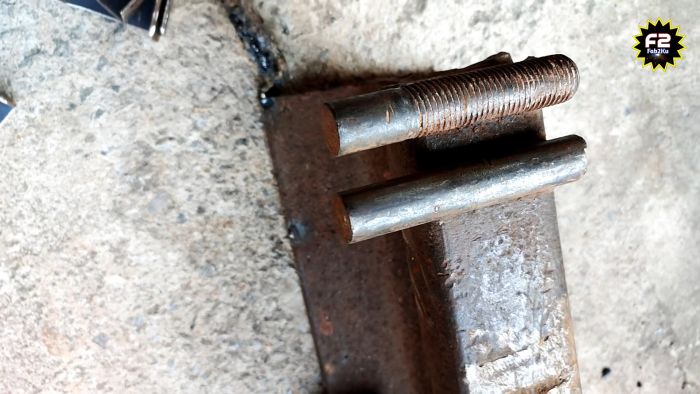С небольшим отступом от заготовки, необходимо приварить в поперечном направлении 2 пальца из кругляка. Зазор между ними делается около 10-15 мм.