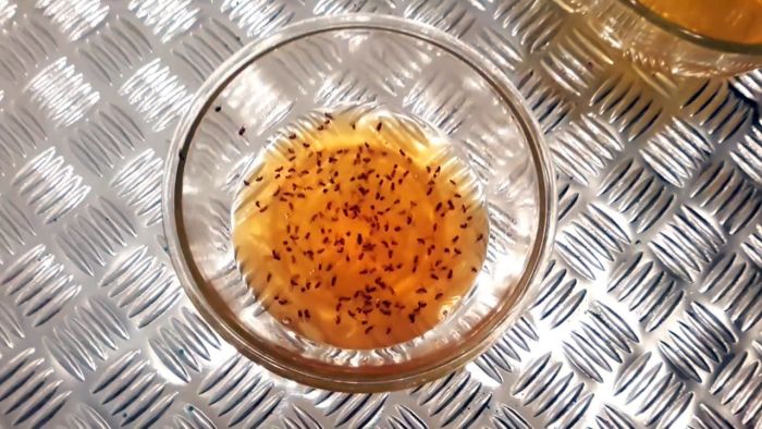 На этом все. Средство от мушек дрозофил готово. Поставьте емкость на открытое пространство и оно соберет всех летунов.