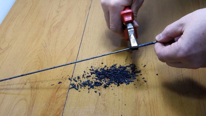 Затем покрытие обжимаем пассатижами, и оно легко осыпается.