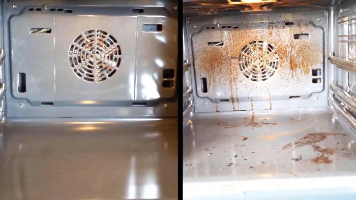 Последняя наносится губкой или кистью на внутренние грязные поверхности в духовке. В таком измазанном виде та должна постоять ночь или как минимум 8 часов с закрытой дверцей.
