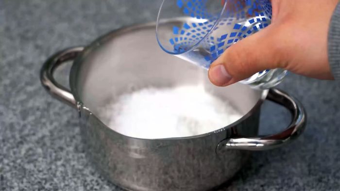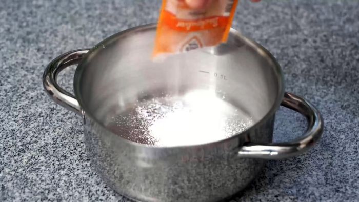 В глубокой миске или кастрюле смешивается чашка пищевой соды и 2 ст.л. уксуса. К ним добавляется немного воды, чтобы получить пасту.